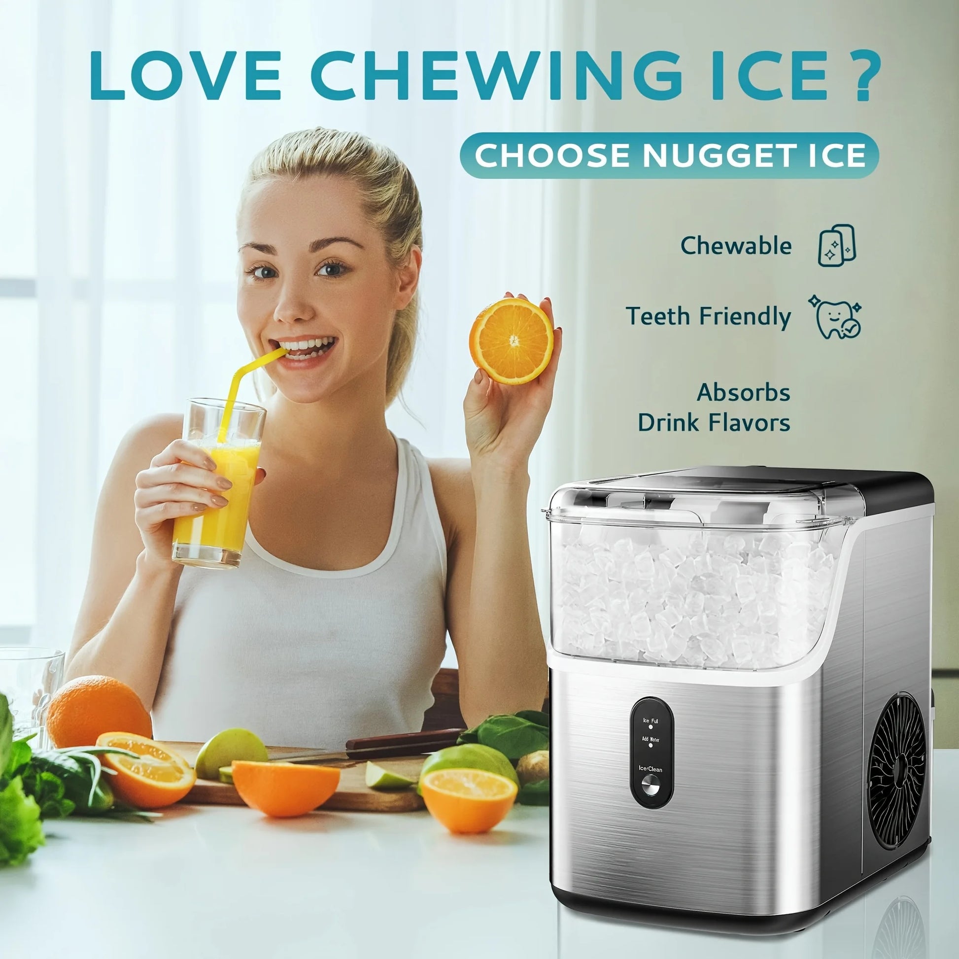 OEM Chewable Nugget Ice Maker 34lbs Countertop Portable Soft Crushed Ice Machine Auto Cleaning One Button Ice Maker for Home